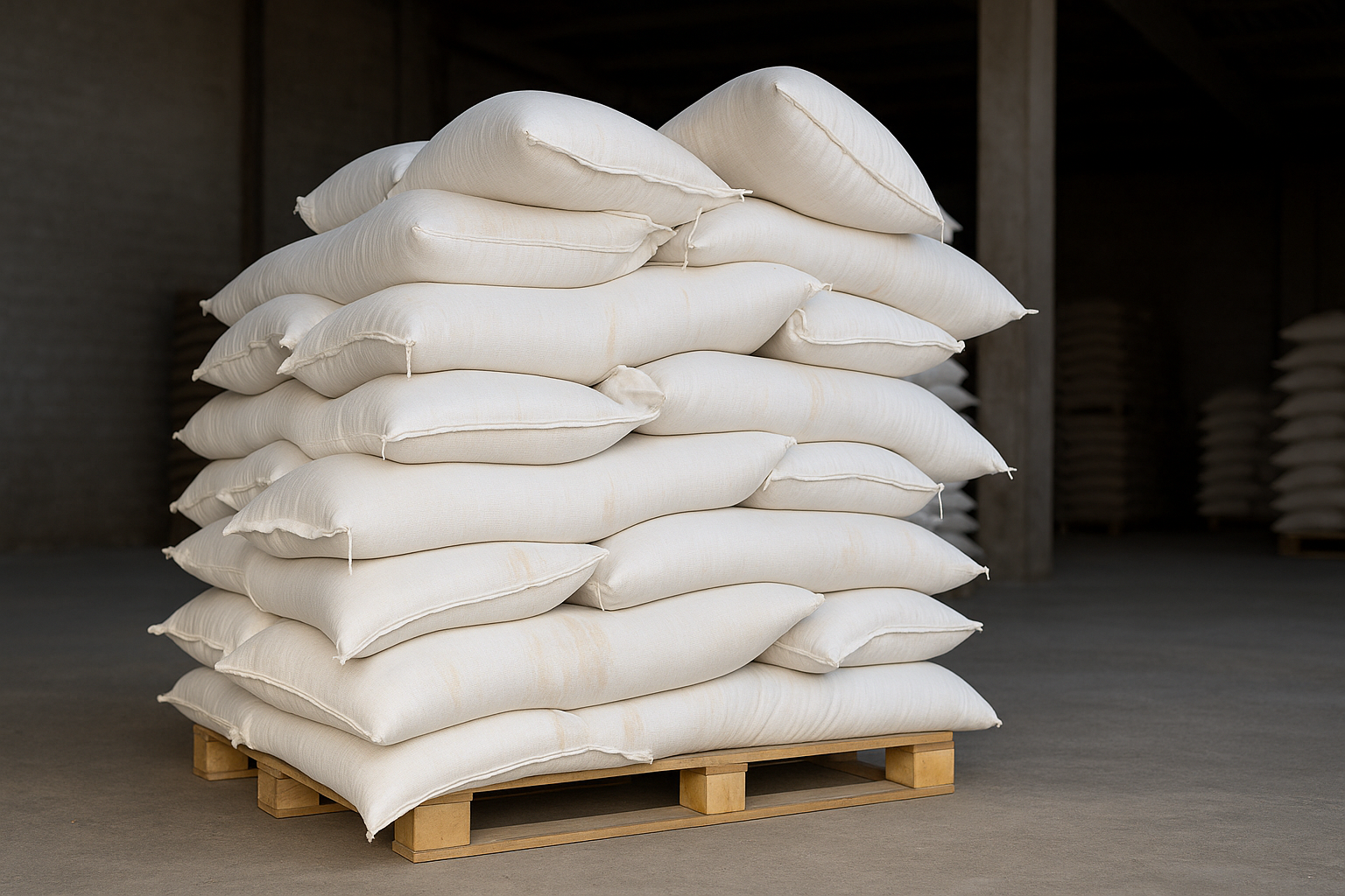 Also known as FIBCs (Flexible Intermediate Bulk Containers), jumbo bags are flexible, high-resistance containers designed to handle loads ranging from 500 to 2,000 kilograms. Their square or rectangular structure enhances stacking stability, making them ideal for optimizing space in both storage and transport.